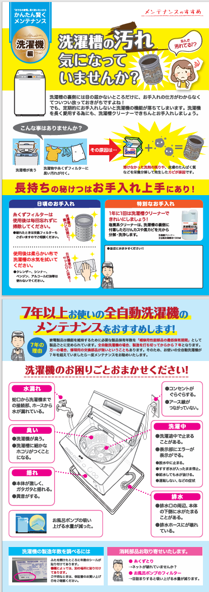 家電豆知識 2025-10-14 鎌電の知恵袋②洗濯機編 みなさん、こんにちは😄今日は洗濯機のメンテナンスのお話しです。毎日キレイに洗濯してるのに、何となく臭ったり汚れ落ちが良くないな~😥なんて思ったことはありませんか?そこで今回は、洗濯機のメンテナンスのアドバイスを載せてみました。ぜひ参考にしてみてくださいね😊 ← 一覧へ