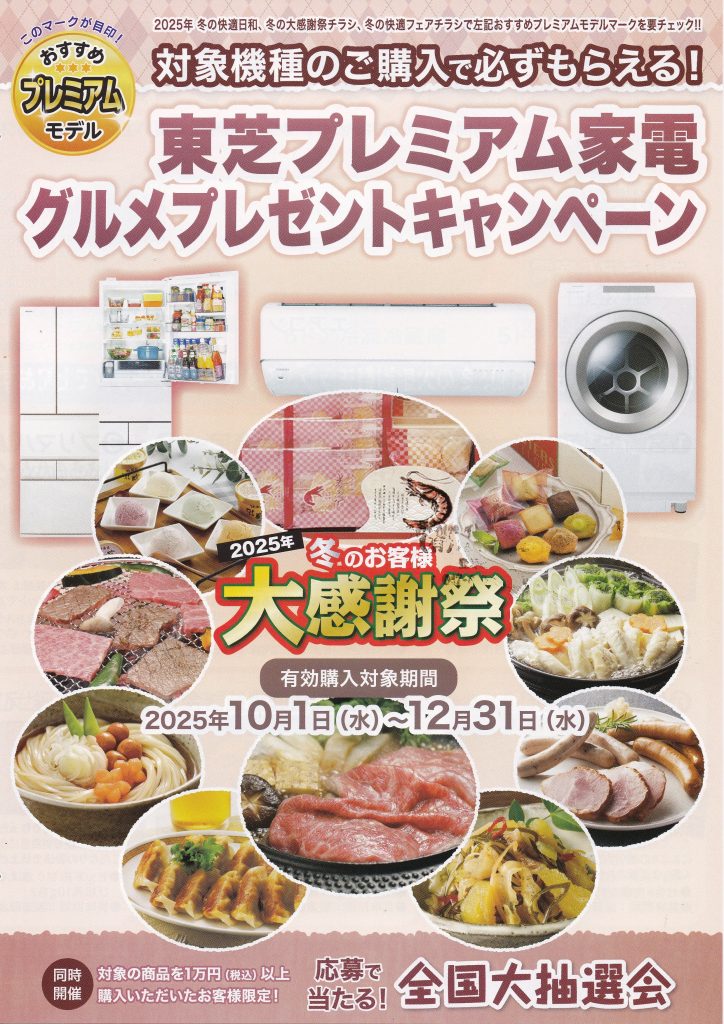 エアコン・ドラム式洗濯乾燥機・冷蔵冷凍庫、対象機種のご購入で⚡必ず⚡プレゼントがもらえます。