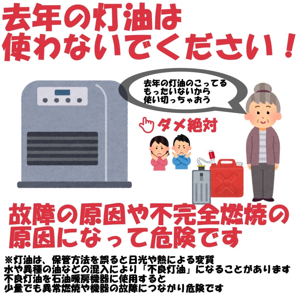 家電豆知識 2025-11-01 去年の灯油は絶対に使わないで‼️ 最近めっきり寒くなってきました🧥そろそろストーブを出した方もいますよね!でも、そのまま使うのはちょっと待って🫷ストーブの中に去年の灯油が残ってませんか?残っている灯油は、絶対に使っちゃダメ‼️古い灯油は、故障や事故の原因になります。使う前には必ず確認して、新しい灯油を入れて使用してくださいね😊 ← 一覧へ